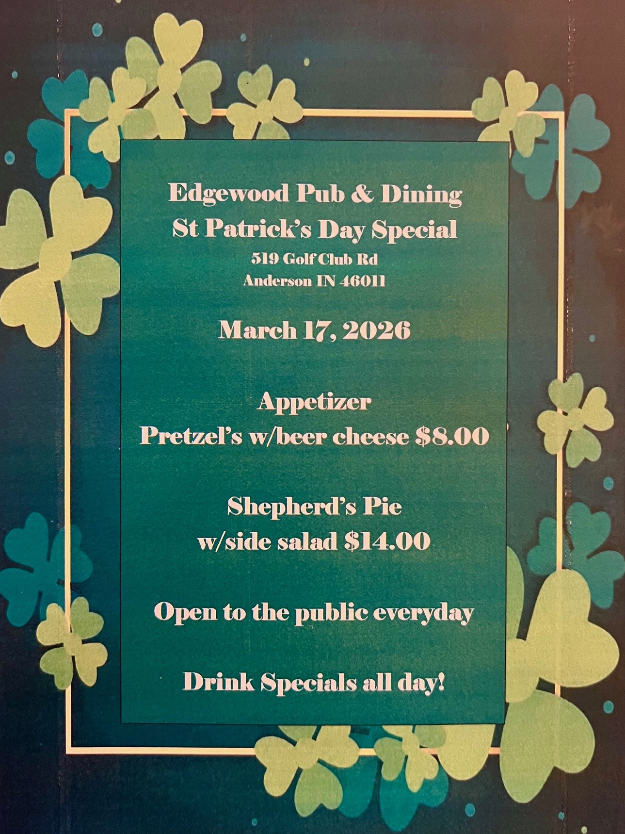 St. Patrick's Day Menu